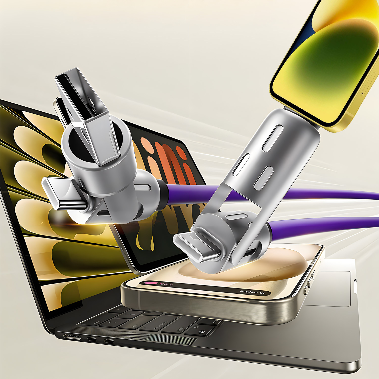 [Fast Charging Cable] 4-in-1 Fast Charging USB Type-C Cable | Full Line Compatibility for iPhone 15/14/13/12, Xiaomi, Samsung, Oneplus - Multi-Color LED Indicator, High-Speed Charging, No Battery, USB Powered, for KADIXI